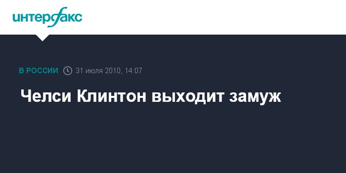 Вашингтон. 31 июля. INTERFAX.RU - Челси Клинтон - дочь бывшего президента США Билла Клинтона и госсекретаря США Хиллари Клинтон в субботу выходит замуж за Марка Мезвински, об этом сообщают американские СМИ.