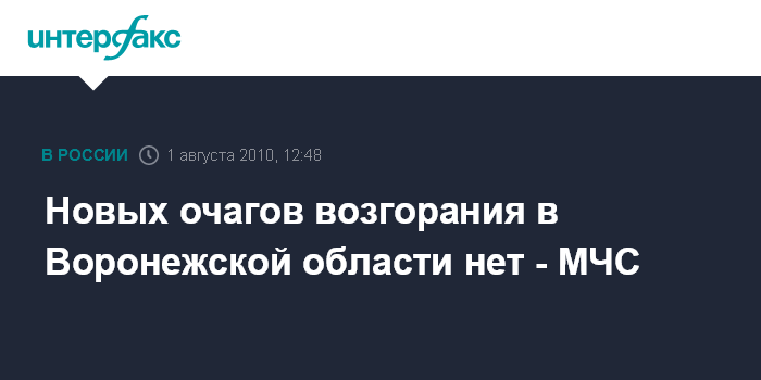 Воронеж. 1 августа. INTERFAX.RU - На территории Воронежской области по состоянию на 10.00 воскресенья новых лесных очагов пожаров не выявлено, производится окарауливание действующих возгораний, сообщает пресс-служба ГУ МЧС по Воронежской области.