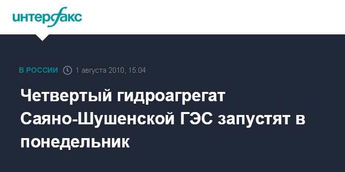 Четвертый гидроагрегат Саяно-Шушенской ГЭС запустят в понедельник
