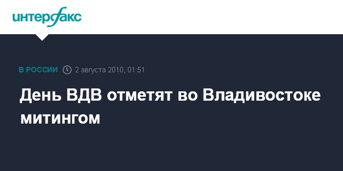 Владивосток. 2 августа. ИНТЕРФАКС-ДАЛЬНИЙ ВОСТОК - Во Владивостоке в понедельник, 2 августа, пройдет ряд мероприятий, посвященных 80-летию со дня образования Воздушно-десантных войск России.