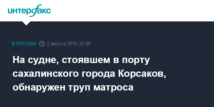 На судне, стоявшем в порту сахалинского города Корсаков, обнаружен труп матроса