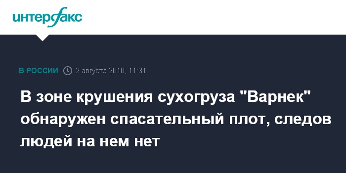 Архангельск. 2 августа. INTERFAX.RU - В 40 милях от района крушения сухогруза "Варнек" с вертолета обнаружен спасательный плот с затонувшего судна, сообщил "Интерфаксу" в понедельник начальник пресс-службы управления МЧС России по Архангельской области Игорь Григорьев. По его словам, плот был обследован, но следов людей на нем не обнаружено.