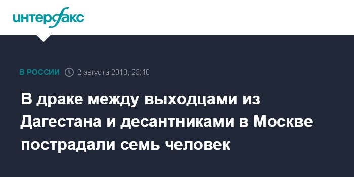 Москва. 2 августа. INTERFAX.RU - По уточненным данным, семь человек пострадали в результате драки на Манежной площади в Москве между выходцами из Дагестана и ветеранами Воздушно-десантных войск.