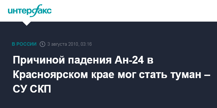Причиной падения Ан-24 в Красноярском крае мог стать туман – СУ СКП