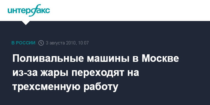 "Из-за аномально жаркой погоды необходимо переходить на трехсменную работу поливочных машин", - заявил Бирюков. Он отметил, что для полива городских улиц и газонов будет мобилизована вся имеющаяся техника.