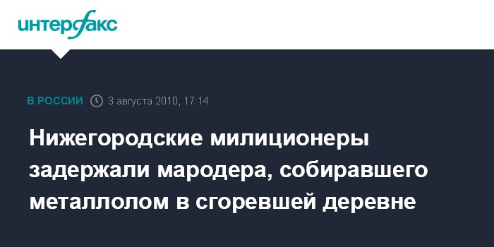 Нижний Новгород. 3 августа. INTERFAX.RU - Сотрудники ОВД Выксунского района Нижегородской области задержали в одной из пострадавших от лесных пожаров деревень мародера.