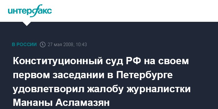Конституционный суд РФ на своем первом заседании в Петербурге удовлетворил жалобу журналистки Мананы Асламазян