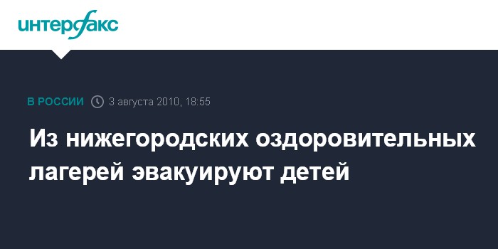 Пресс-служба управления Роспотребнадзора по Нижегородской области сообщает, что дети вывезены из лагерей "Лазурный" "Звездный", "Костер" Выксунского района области, "Озеро Свято" и "Озерный" Навашинского района, "Солнечный", "Солнышко" и "им.Гайдара" Павловского района, а также лагеря "Березка" Богородского района.