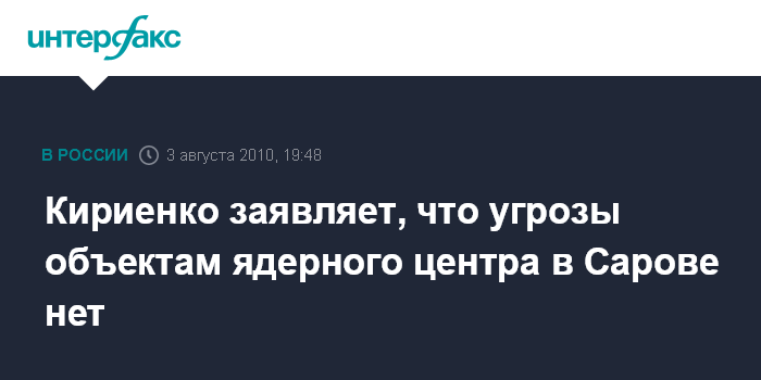 Кириенко заявляет, что угрозы объектам ядерного центра в Сарове нет