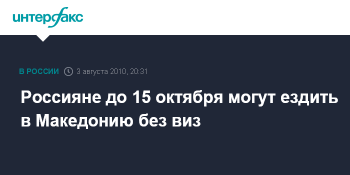 Россияне до 15 октября могут ездить в Македонию без виз