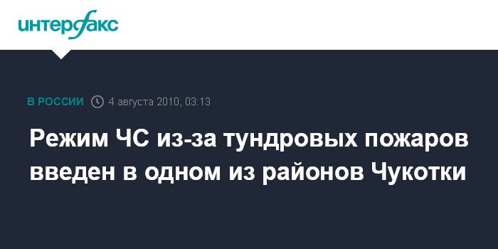 Анадырь. 4 августа. ИНТЕРФАКС-ДАЛЬНИЙ ВОСТОК - В связи с пожароопасной обстановкой, сложившейся в отдельных местностях Анадырского района Чукотки, местные власти приняли решение ввести режим чрезвычайной ситуации, сообщает пресс-служба окружной администрации в среду.
