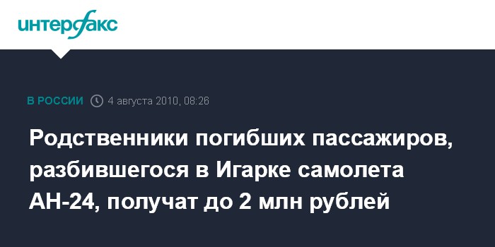 Родственники погибших пассажиров, разбившегося в Игарке самолета АН-24, получат до 2 млн рублей