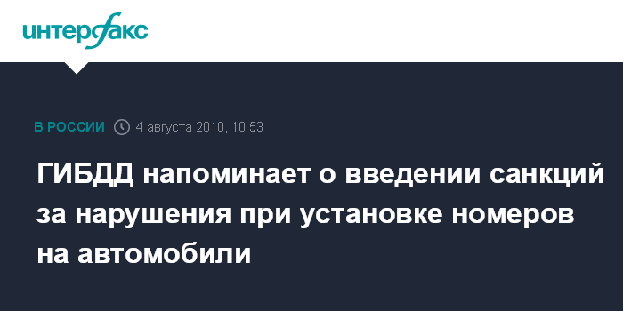 Москва. 4 августа. INTERFAX.RU – Российские водители, устанавливающие номерные знаки не на штатные места автомобиля, либо скрывающие их с помощью защитных пленок и сеток, будут с пятницы лишаться прав на срок до трех месяцев, напомнили в ГИБДД.