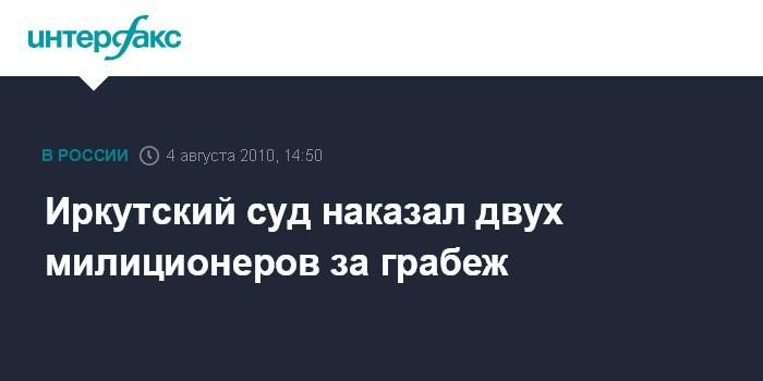 Как сообщает пресс-служба прокуратуры Иркутской области, милиционеры Николай Сергеев и Баир Бахрушкин признаны виновными в превышении должностных полномочий (ч.1 ст.286 УК РФ) и грабеже (п."а" ч.2 п. ст.161 УК РФ).