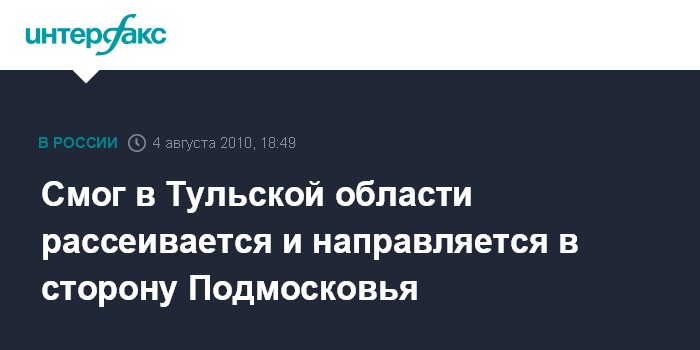 В пресс-службе Главного управления МЧС РФ по Тульской области "Интерфаксу" сообщили, что в настоящее время слабый смог наблюдается в отдельных районах Тулы, средняя задымленность отмечается в Алексинском, Веневском, Воловском, Узловском и Заокском районах области.