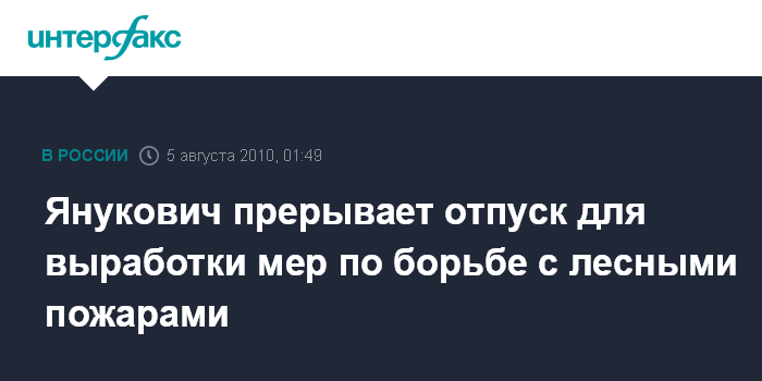 Янукович прерывает отпуск для выработки мер по борьбе с лесными пожарами