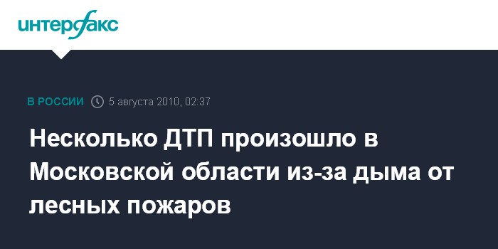 Москва. 5 августа. ИНТЕРФАКС - Задымление от лесных пожаров стало причиной нескольких ДТП в Подмосковье, оперативным службам предписано передвигаться с максимально включенной бортовой светосигнализацией, сообщил "Интерфаксу" источник в правоохранительных органах.