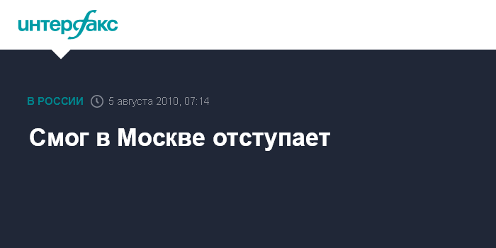 Москва. 5 августа. ИНТЕРФАКС - К утру четверга смог в Москве постепенно рассеивается, стало легче дышать.