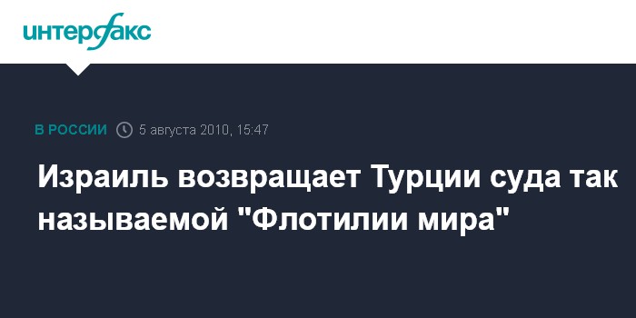 Израиль возвращает Турции суда так называемой "Флотилии мира"