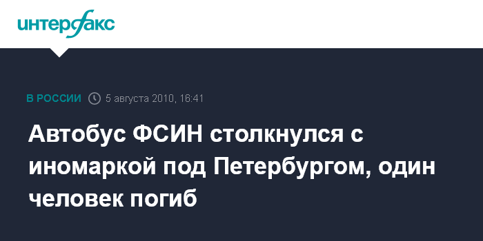 Санкт-Петербург. 5 августа. INTERFAX.RU - В Ленинградской области автобус регионального Управления федеральной службы исполнения наказаний столкнулся с иномаркой, погиб один человек.