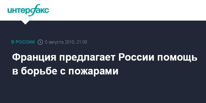 Париж. 5 августа. INTERFAX.RUС - Президент Франции Николя Саркози выразил готовность в случае необходимости оказать России помощь в тушении лесных пожаров, говорится в коммюнике Елисейского дворца, распространенном в четверг.