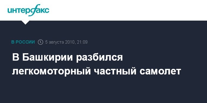 Уфа. 5 августа. INTERFAX.RU - В Белебеевском районе Башкирии потерпел крушение частный легкомоторный самолет, один человек погиб.