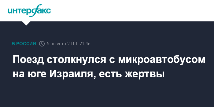 Иерусалим. 5 августа. INTERFAX.RU - Семеро человек погибли и 30 получили травмы на юге Израиля в результате столкновения микроавтобуса с пассажирским поездом, сообщает в четверг газета Haaretz.