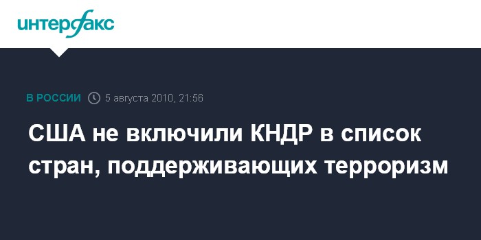 Вашингтон. 5 августа. INTERFAX.RU - Власти США решили в этом году не возвращать КНДР в "черный список" стран, оказывающих, по мнению Вашингтона, поддержку терроризму, сообщает агентство ЭФЭ.