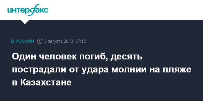 Астана. 6 августа. ИНТЕРФАКС-КАЗАХСТАН - В Астане на пляже на территории парка от удара молнии пострадали одиннадцать человек, один из них скончался, сообщили в пятницу МЧС Казахстана.