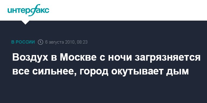 Собеседник агентства добавил, что рост концентрации загрязняющих веществ отмечался на протяжении всей ночи."Мы прогнозируем, что рост загрязнения продолжится, в городе ожидается очень высокое загрязнение атмосферного воздуха, сильное задымление уже отмечается на большей части российской столицы", - отметили в департаменте.