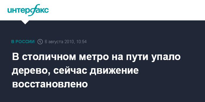 В столичном метро на пути упало дерево, сейчас движение восстановлено