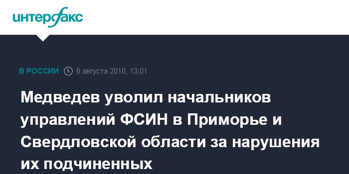 Медведев уволил начальников управлений ФСИН в Приморье и Свердловской области за нарушения их подчиненных