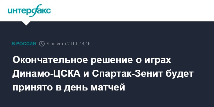 Окончательное решение о играх Динамо-ЦСКА и Спартак-Зенит будет принято в день матчей