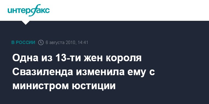 Париж. 6 августа. INTERFAX.RU - Любовная интрижка с одной из тринадцати жен короля Свазиленда стоила поста и свободы министру юстиции страны Ндумисо Мамбе.
