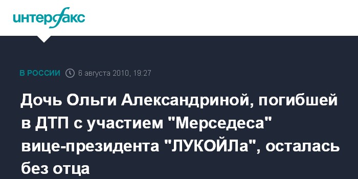 Москва. 6 августа. INTERFAX.RU - Девочка, чья мать погибла в ДТП на Ленинском проспекте с участием "Мерседеса" вице-президента "ЛУКОЙЛа" Анатолия Баркова, осталась круглой сиротой.