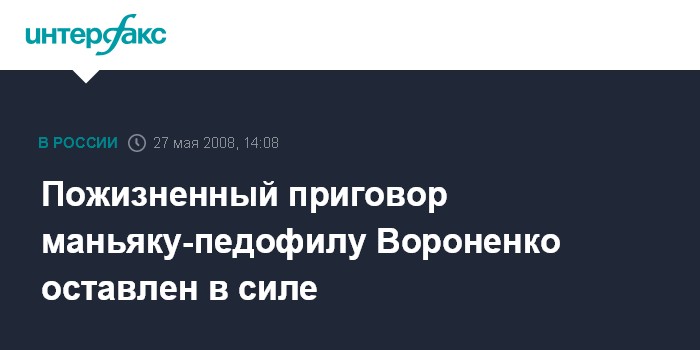 Пожизненный приговор маньяку-педофилу Вороненко оставлен в силе