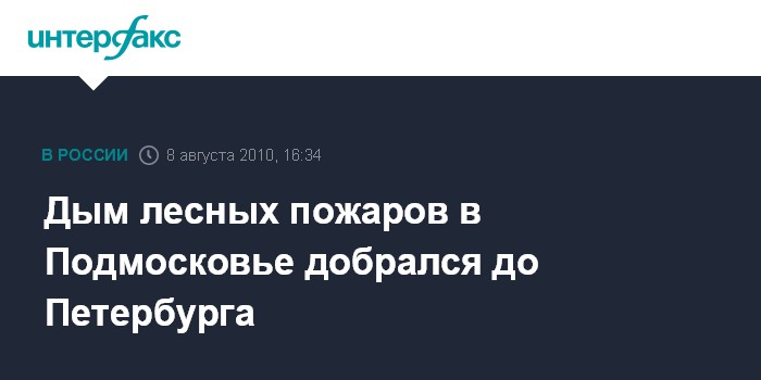 В Северо-Западном региональном центре МЧС "Интерфаксу" сообщили, что в воскресенье до Петербурга дошел дым от пожаров в московском регионе. "На Северо-Западе все спокойно. Это отголосок московского пожара", - сказал собеседник агентства.
