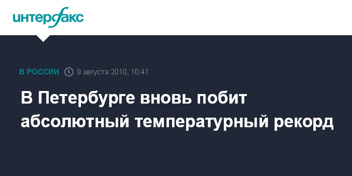 Санкт-Петербург. 9 августа. INTERFAX.RU - В Петербурге на выходных был побит абсолютный температурный рекорд за всю историю метеонаблюдений. "В субботу, 7 августа, в Петербурге было зафиксировано 37,1 градуса, такого еще никогда не было", - сообщили "Интерфаксу" в городском гидрометцентре в понедельник.