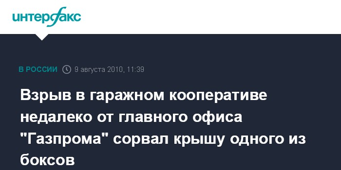 Москва. 9 августа. INTERFAX.RU - В гаражном кооперативе в Научном проезде, дом 15, на юго-западе Москвы произошел мощный взрыв, сообщили "Интерфаксу" источники в правоохранительных органах. "Примерно в 10:50 в одной из боксов гаражного кооператива, расположенного в доме 15 по Научному проезду, сработало взрывное устройство. В результате с гаражного бокса сорвало крышу, на месте происшествия образовалась воронка и даже треснула бетонная плита", - сказал источник. По его данным, обошлось без пострадавших. Несколько осколков попало на территорию расположенного рядом центрального офиса "Газпрома" и повредило там одну из машин. "В настоящий момент на месте происшествия работают милицейские эксперты, которые должны дать точный ответ, что именно взорвалось на территории гаражного кооператива", - отметил источник.