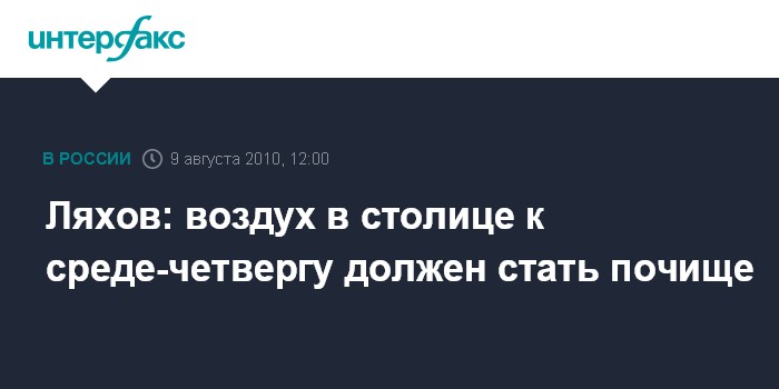 Москва. 9 августа. INTERFAX.RU - В Москве к середине недели воздух станет чище из-за смены направления ветра, сообщил генеральный директор Гидрометеобюро Москвы и Московской области Алексей Ляхов. "По сегодняшним оценкам, к среде-четвергу должно стать полегче, воздух должен стать почище", - сказал Ляхов в интервью телеканалу "Россия-24". По его словам, дыма в Москве станет меньше из-за перемены направления ветра.