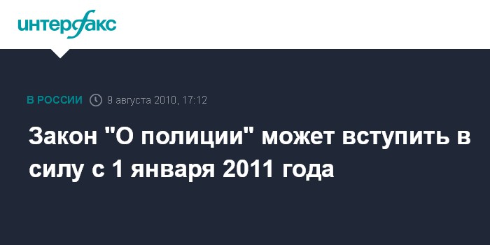 Закон "О полиции" может вступить в силу с 1 января 2011 года