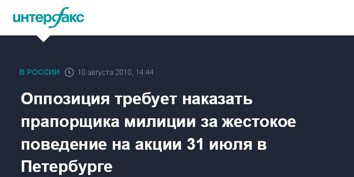 "Один из милиционеров, прапорщик, который задерживал пришедших на митинг граждан, отличался излишней агрессивностью. Во время задержаний он, по сути, избивал не оказывавших сопротивление граждан", - сказал "Интерфаксу" один из лидеров петербургских "лимоновцев" Андрей Песоцкий, который участвовал в митинге 31 июля.