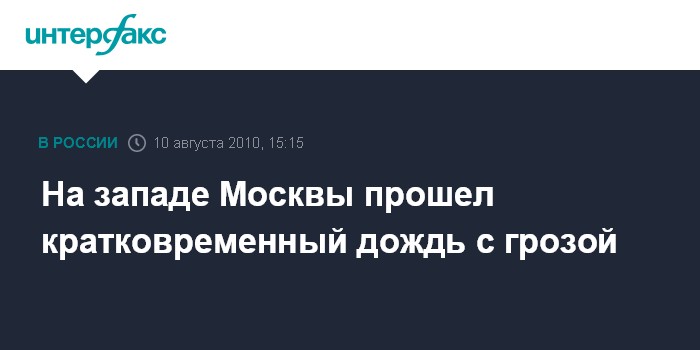 Москва. 10 августа. INTERFAX.RU – Кратковременный дождь, сопровождавшийся сильным ветром, прошел на западе и юге Москвы днем во вторник.