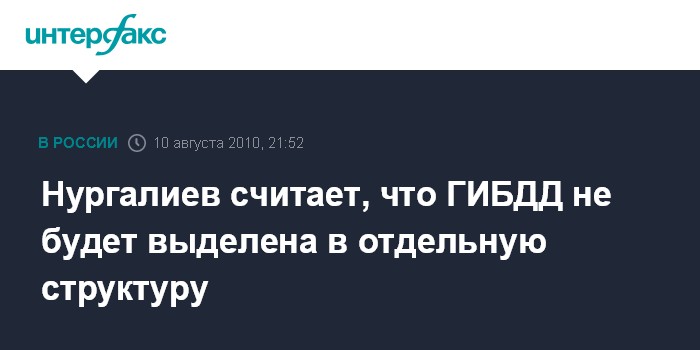 Рязань. 10 августа. INTERFAX.RU - ГИБДД не будет выделяться в отдельную структуру в рамках реформирования МВД, заявил глава МВД Рашид Нургалиев.
