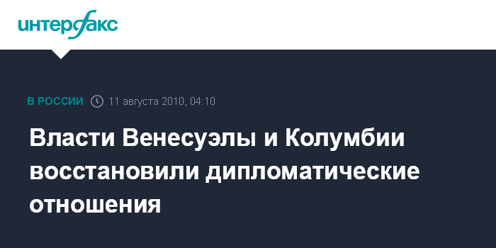 Москва. 11 август. ИНТЕРФАКС - Президенты Колумбии и Венесуэлы договорились о восстановлении двусторонних дипотношений, сообщает в среду британская телерадиовещательная корпорация Би-би-си.