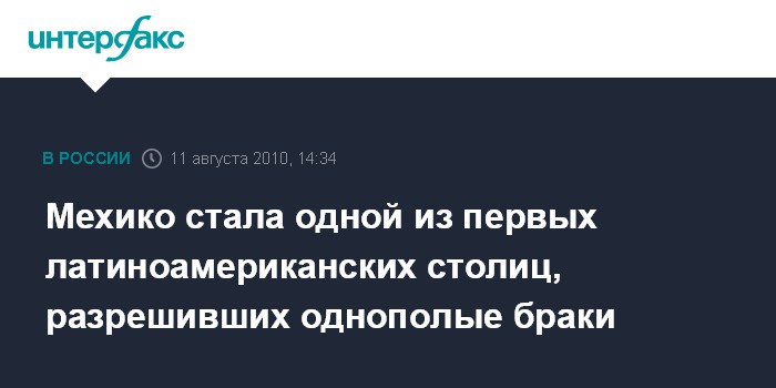 Лондон. 11 августа. INTERFAX.RU - Верховный суд Мехико постановил, что однополые браки, заключенные в столице, должны признаваться на всей территории страны. В поддержку этого решения проголосовали 9 из 11 судей. Двое выступили против, заявив, что такой вердикт подорвет гармонию федеральной системы страны, сообщила в среду BBC.