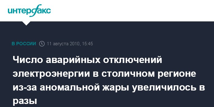 Число аварийных отключений электроэнергии в столичном регионе из-за аномальной жары увеличилось в разы
