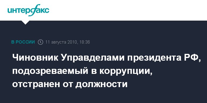 Чиновник Управделами президента РФ, подозреваемый в коррупции, отстранен от должности