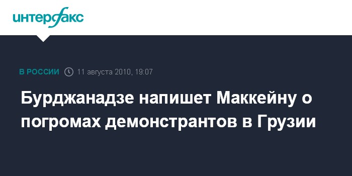 Тбилиси. 11 августа. INTERFRAX.RU - Лидер "Демократического движения - единая Грузия", экс-спикер грузинского парламента Нино Бурджанадзе собирается написать американскому сенатору-республиканцу Джону Маккейну открытое письмо с критикой его представлений о положении дел в Грузии.