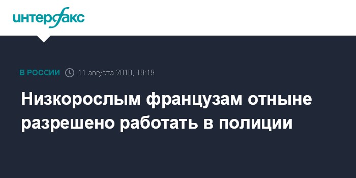 Париж. 11 августа. INTERFAX.RU - Министерство труда Франции пересмотрело требования, предъявляемые к желающим работать в полиции и, среди прочего, отменило ограничения, касающиеся роста, пишет газета Le Figaro.
